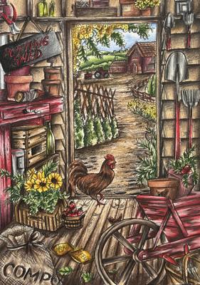 Раскраска «Country Farm Scenes» (Тереза Гудрич) — в сообществе Picturium 9 работ. Участники раскрашивают карандашами, акварелью, маркерами и другими материалами.