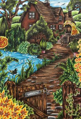 Раскраска «Village Charm» (Тереза Гудрич) — в сообществе Picturium 15 работ. Участники раскрашивают карандашами, акварелью, маркерами и другими материалами.