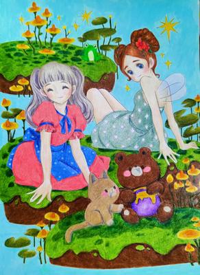 Раскраска «История таинственной лесной феи и девочки» (Пак Су Хен) — в сообществе Picturium 8 работ. Участники раскрашивают карандашами, акварелью, маркерами и другими материалами.